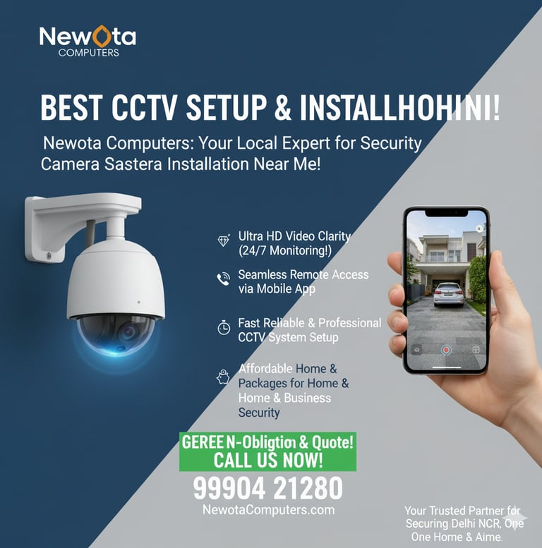 Securing the Community: Why Professional CCTV Installation by Newota Computers is Essential for Rohini In a densely populated and dynamic urban center like Delhi's Rohini, the safety and security of homes and businesses are paramount. The promotional poster for Newota Computers offering CCTV installation serves as a crucial reminder that modern surveillance is no longer a luxury but a fundamental necessity for peace of mind. Investing in a professional CCTV system from a trusted local provider like Newota is the single most effective step a resident or business owner can take to protect their assets, families, and livelihood. The most immediate and powerful benefit of installing visible security cameras is crime deterrence. Criminals are opportunistic, and studies consistently show they are far less likely to target properties with clear, functioning surveillance. A prominent camera acts as an instant, non-lethal warning sign, shifting the criminal’s attention to an easier target. For the small businesses, retail shops, and residential colonies of Rohini, this preventive measure significantly reduces the risk of break-ins, theft, and vandalism, safeguarding against both material loss and the emotional trauma associated with such incidents.