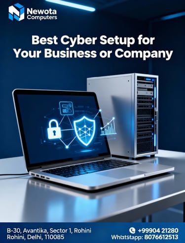 🔒 Newota Computers — Professional Cyber Setup Services in Delhi, Rohini In today’s digital era, every business needs a strong and secure IT foundation. At Newota Computers, we specialize in providing comprehensive Cyber Setup Services that empower your business with advanced technology, data protection, and reliable infrastructure. Based in Rohini, Delhi, we have become a trusted name for cyber setup, networking, and IT infrastructure solutions across North Delhi and nearby areas. Our Cyber Setup Service is designed for both small and large businesses that want a secure, efficient, and scalable digital environment. We start by understanding your organization’s requirements — whether it’s a startup, corporate office, retail business, or an industrial setup — and then build a customized cyber infrastructure that fits your goals. From network cabling, server setup, and firewall installation to data security systems, CCTV integration, and remote management tools, we handle every technical detail with precision and professionalism. At Newota Computers, we believe that cyber setup isn’t just about installing devices — it’s about creating a digital ecosystem that runs your business smoothly and securely. Our expert technicians use the latest tools and technologies to ensure your office systems are connected, monitored, and protected 24/7. Whether you need a LAN/WAN setup, secure server configuration, or network troubleshooting, our experienced team delivers reliable, high-speed, and future-ready solutions. Security is at the heart of our service. We integrate cybersecurity layers, antivirus protection, and data backup systems to ensure your critical business information is always safe from threats. Our AI-enhanced monitoring tools help detect unusual network activity early, keeping your systems safe and optimized. Alongside security, we also focus on performance optimization — reducing system lag, improving internet speed, and ensuring every connected device works efficiently. With hundreds of satisfied clients in Rohini, Pitampura, Mangolpuri, Budh Vihar, and North Delhi, Newota Computers continues to set new benchmarks in IT infrastructure and cyber setup. Our aim is to help businesses operate smarter, faster, and safer in a rapidly evolving digital world. From initial consultation to final deployment and post-installation support, we ensure a hassle-free and transparent process. Choose Newota Computers for your next Cyber Setup Project and experience the perfect balance of technology, security, and support. 📍 Visit us at: B-30, Avantika, Sector 1, Rohini, Delhi, 110085 📞 Call: +91 99904 21280 | 💬 WhatsApp: 8076612513 🌐 Your Trusted Partner in Smart & Secure IT Solutions